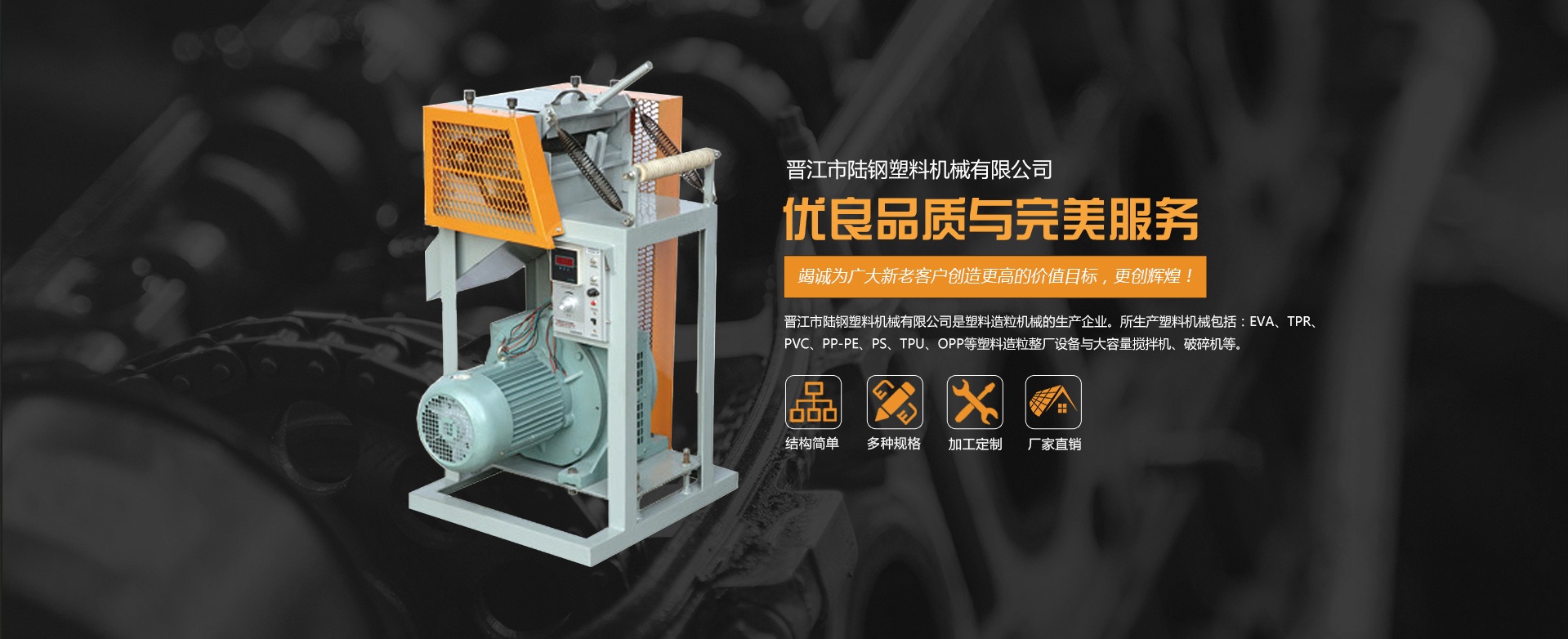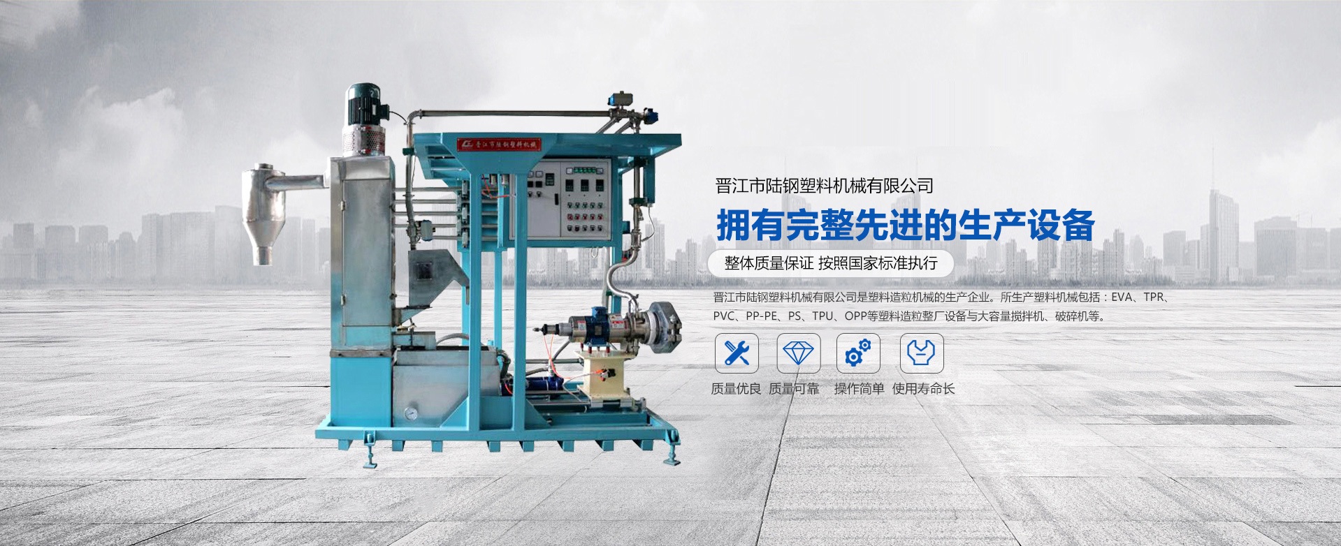 熱烈慶祝晉江市陸鋼塑料機(jī)械有限公司網(wǎng)站改版完成!!晉江市陸鋼塑料機(jī)械有限公司是塑料造粒機(jī)械的生產(chǎn)企業(yè)。
